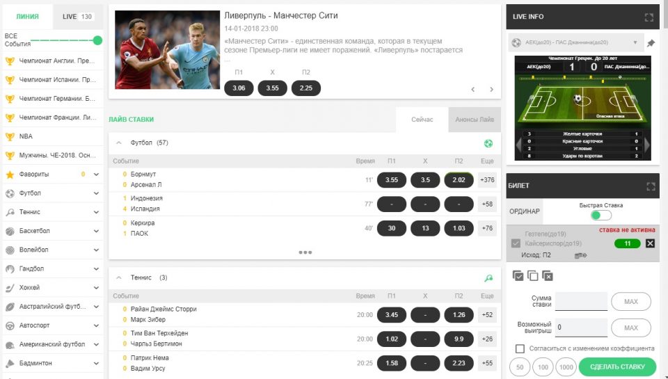 У клиентов этой БК есть возможность делать live-ставки. Они предполагают заключение пари прямо во время трансляции матча. Благодаря этому прогнозировать исход события становится намного проще.